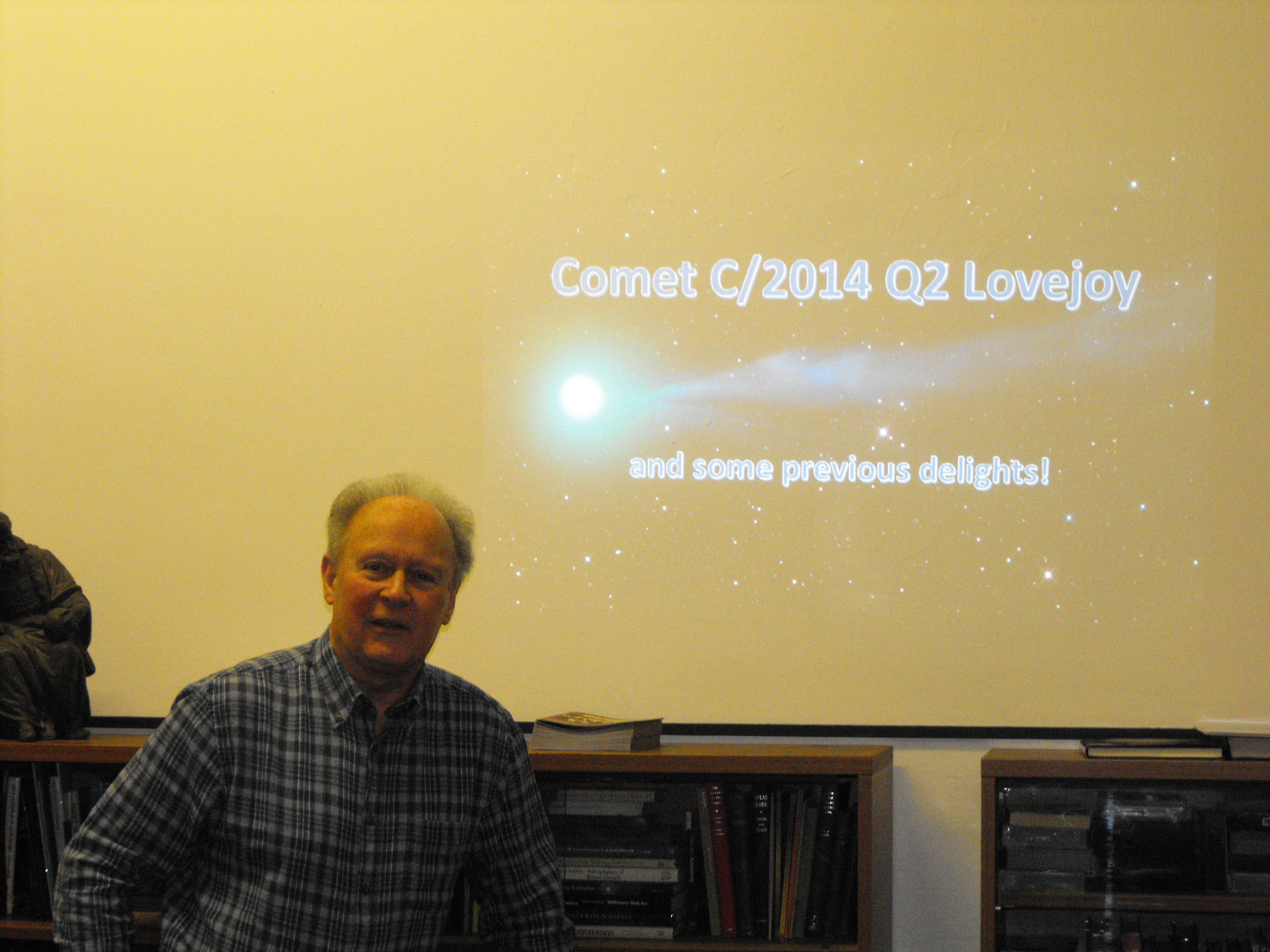 First was Ken Kennedy who discussed Comet C/2014 Q2 Lovejoy and how to photograph comets. The talk was illustrated with photo's from Ken's personal collection, from his first attempts with the latest camera of the 1950's, to more recent attempts. An enjoyable and humerous talk.