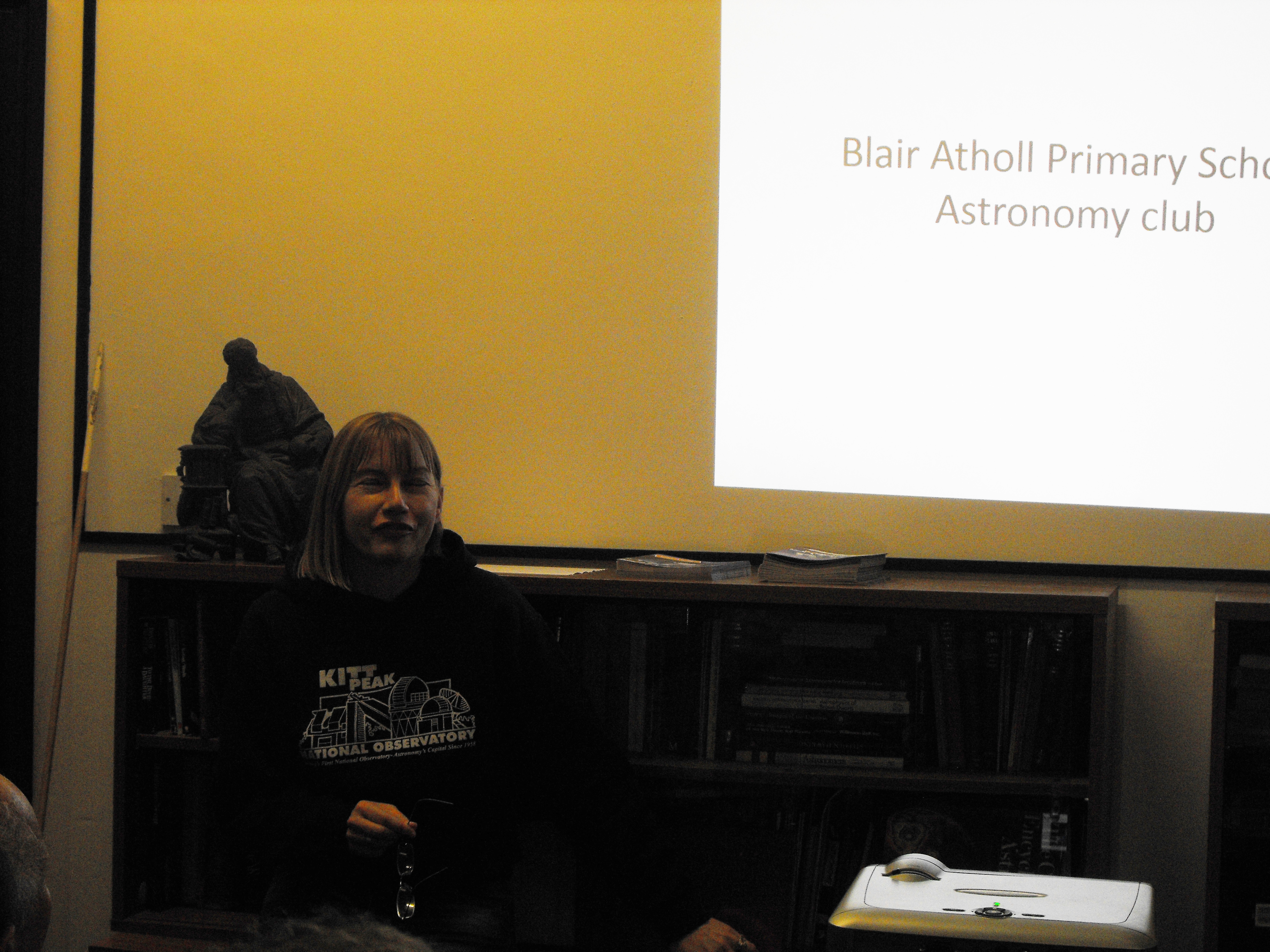 The first half of the meeting was closed by Pam Foster who showed us picturs of activities from the Blair Atholl Primary School Astronomy Club, and described the events and activities that the children and their parents take part in. This club is very active and has a large membership which covers a majority of the pupils of all ages. The included pictures admirably demonstrated the dedication and skills of the adult helpers and the enthusiasm of the children
