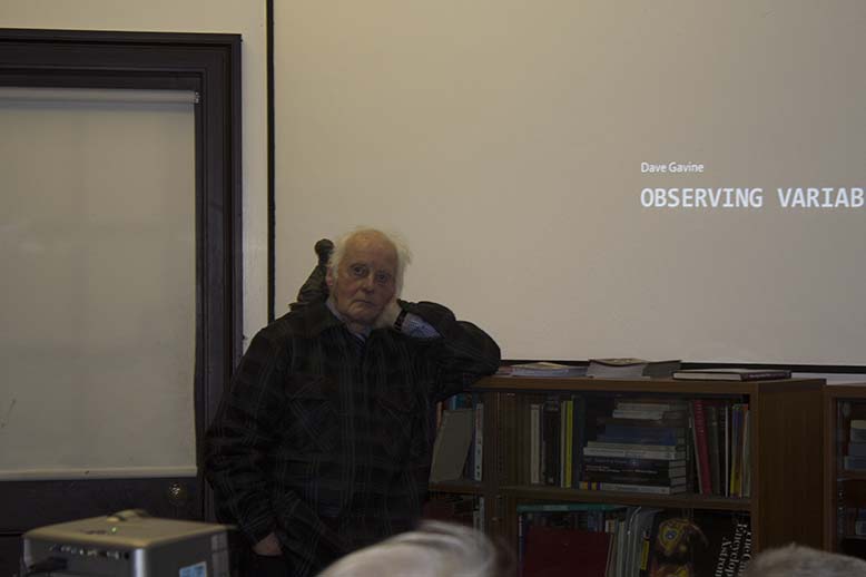 Following a short, but not as short as promised, description of a few humerous e-mails sent and received by Tony, David discussed the types of variable stars and the methods of measuring their brightness and periods of their cycles. The talk was well illustrated with diagrams and photo's showing these methods in a practical way.