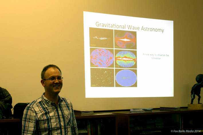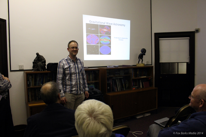 Stuart described the experimental methods used in attempting to detect and measure gravitational waves, with somewhat humerous references (and movies) from both Star Trek and Dr. Who. This, with very easy to understand graphics, made for a fascinating and enjoyable talk.
