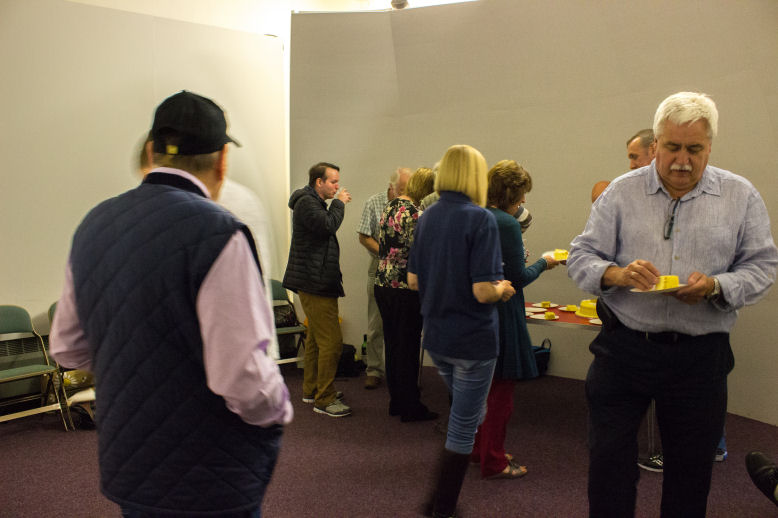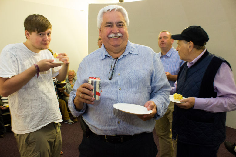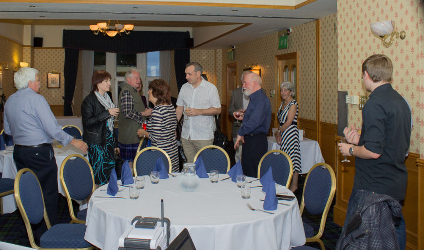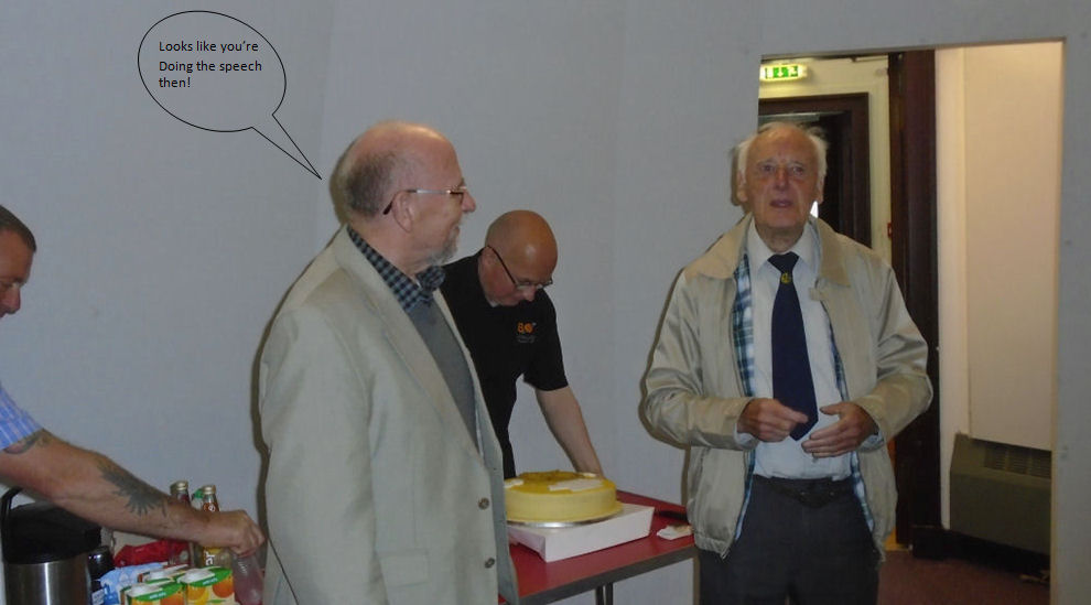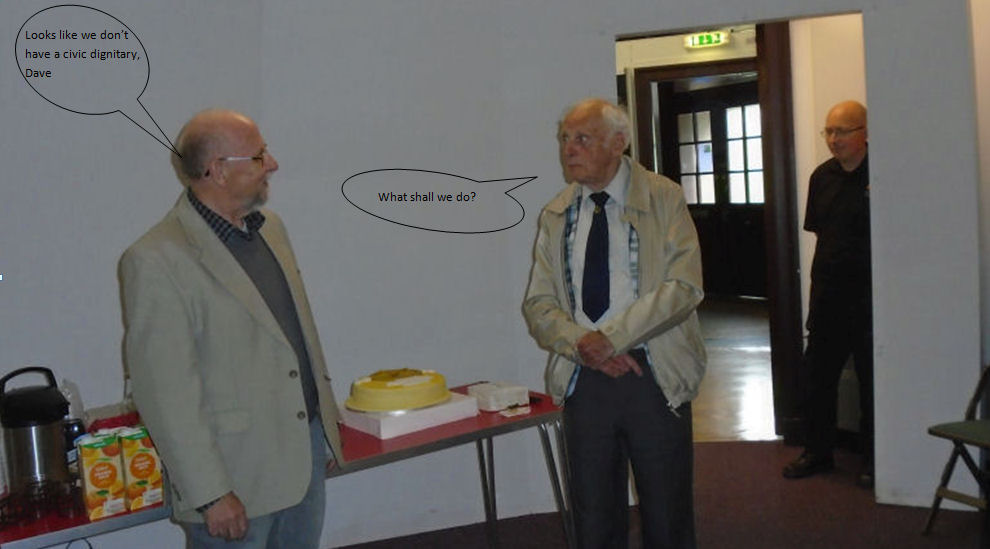 Due to a misunderstanding no civic dignitaries were available to attend this event, so the Committee decided to go ahead anyway and asked David Gavine to do the honours. He gave a sterling and lighthearted talk on the early days of the society, mentioning some if its most noted members before cutting the cake. Those attending enjoyed a fine buffet suplied by themselves accompanied by great conversation.